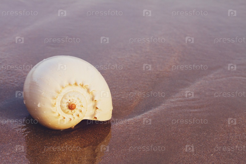 Ракушка на берегу моря на закате
