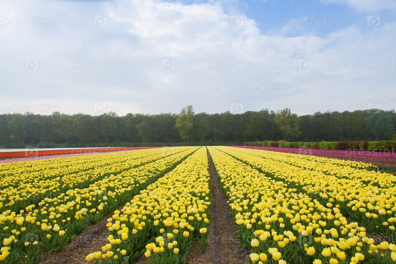 Поле голландских желтых тюльпанов