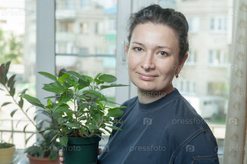 Женщина, держащая цветочный горшок