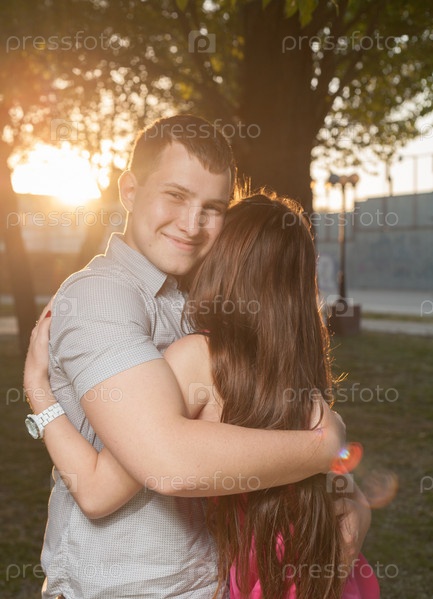 Пара с подсветкой на закате в парке