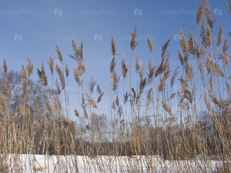 Камыши на замерзшем озере