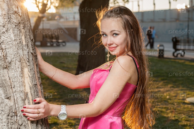 Девушка с подсветкой на закате в парке