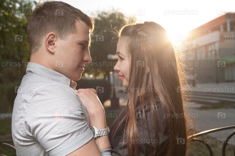 Пара с подсветкой на закате в городе