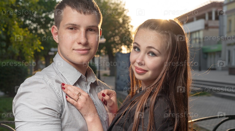 Пара с подсветкой на закате в городе