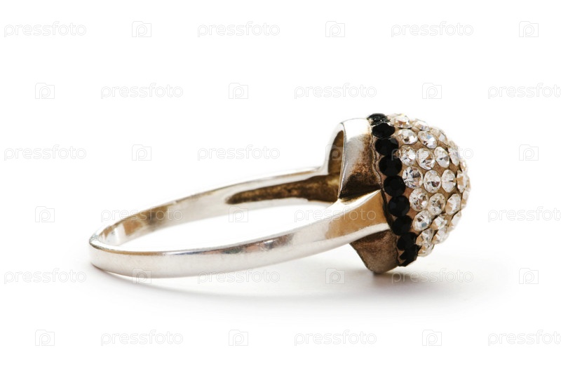 Кольцо с белыми и черными камнями, изолированное на белом фоне