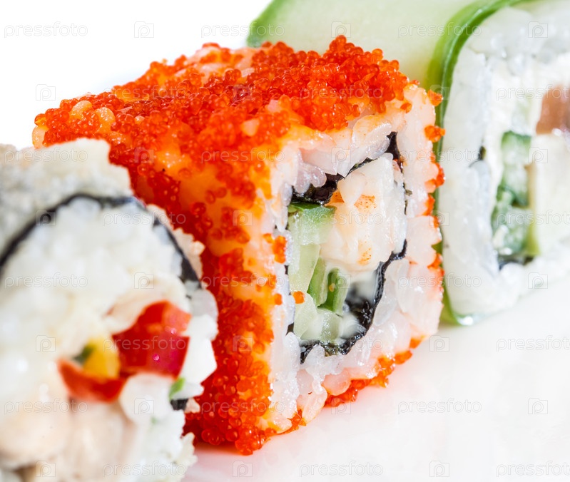 Суши ролл на белом фоне