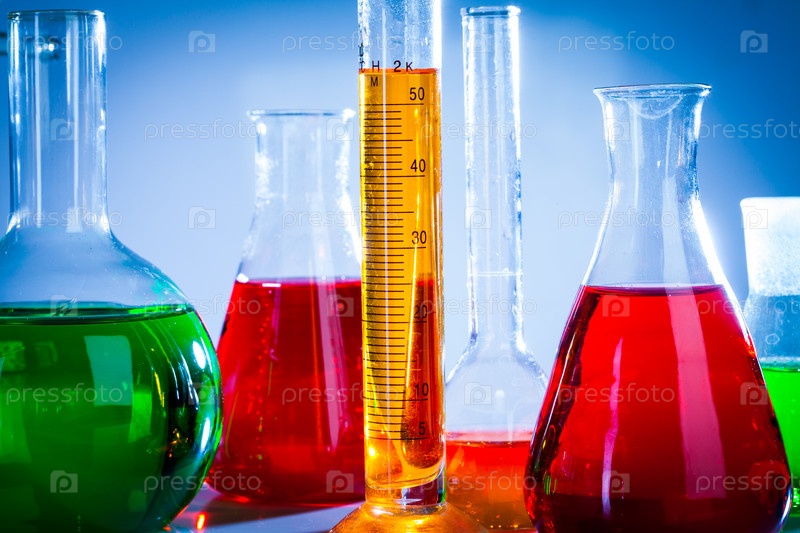 Мензурки с красочными жидкостями