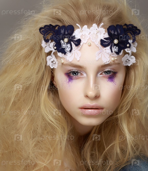 Кружево. Портрет крупным планом стильной привлекательной модели с современным макияжем