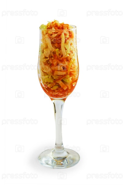 Вкусный салат с томатами, капустой и салатом, изолированный на белом фоне