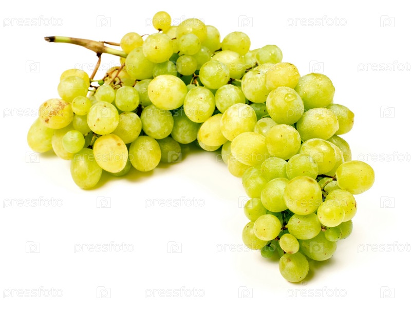 Гроздь зеленого винограда на белом фоне