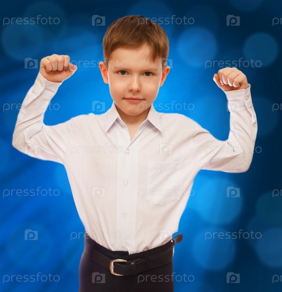 Мальчик, изолированный на абстрактном фоне. Бизнес, сила, успех и мотивация