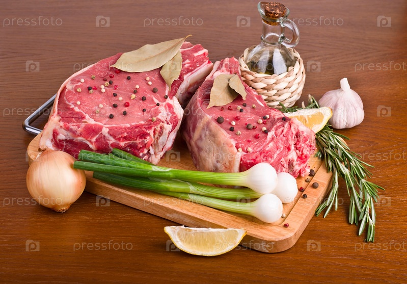 Сырое мясо на деревянном столе