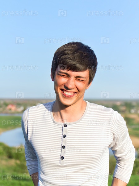 Летний портрет красивого молодого мужчины. Мягкий вечерний солнечный свет