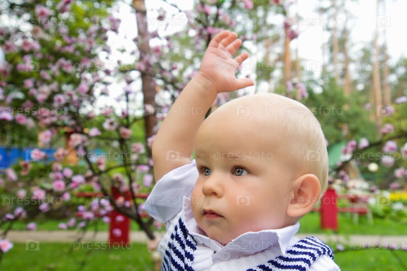 Маленький мальчик поднимает руку