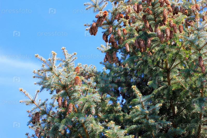 Ветви сосны на фоне безоблачного неба