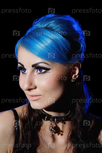 Красивая готическая женщина с голубыми волосами