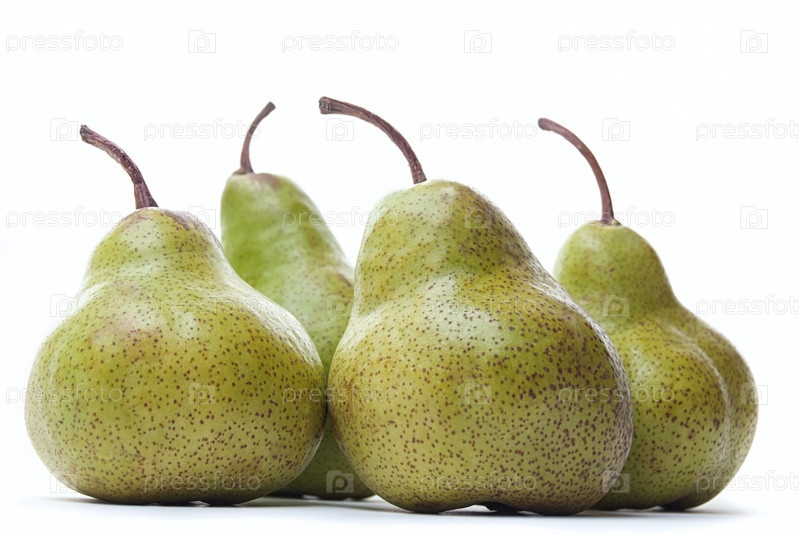 Четыре груши, изолированные на белом фоне