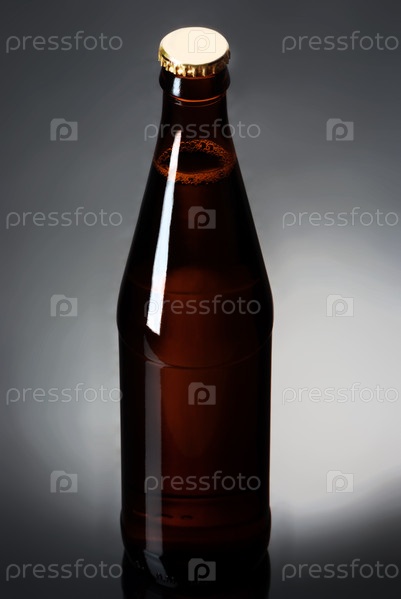 Бутылка пива на отражающей поверхности