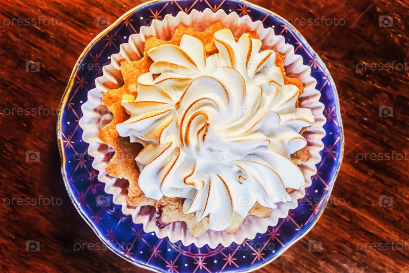 Кекс на синей тарелке