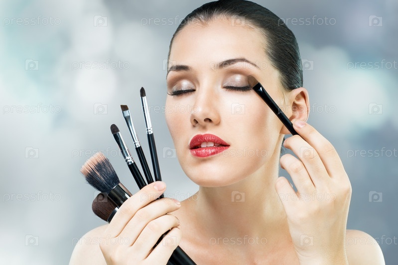 Девушка наносит макияж