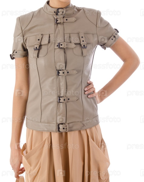 Женщина в модной одежде на белом