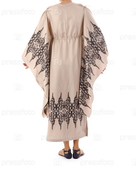 Женщина в модном платье на белом фоне