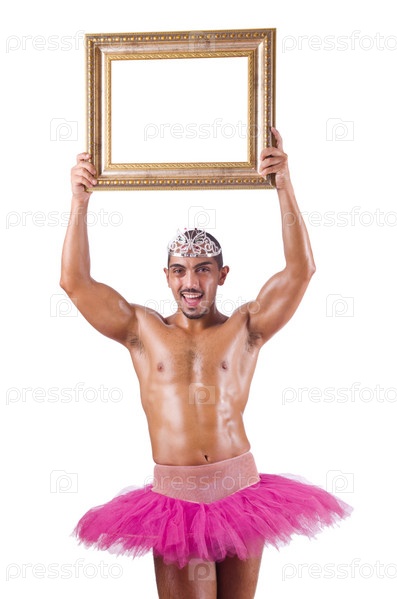 Мужчина в балетной пачке с рамой
