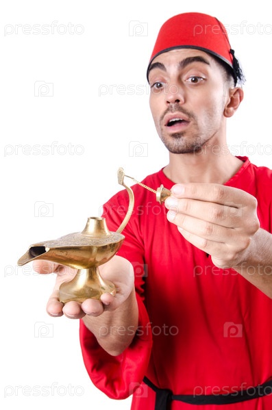 Турок с лампой на белом фоне