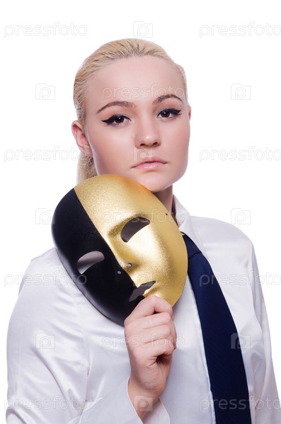 Женщина с маской в концепции лицемерия