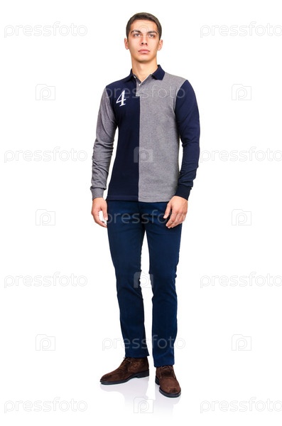 Мужчина в модной одежде, изолированный на белом