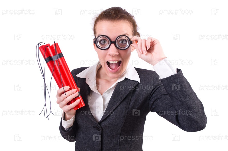 Бизнес-леди с динамитом на белом