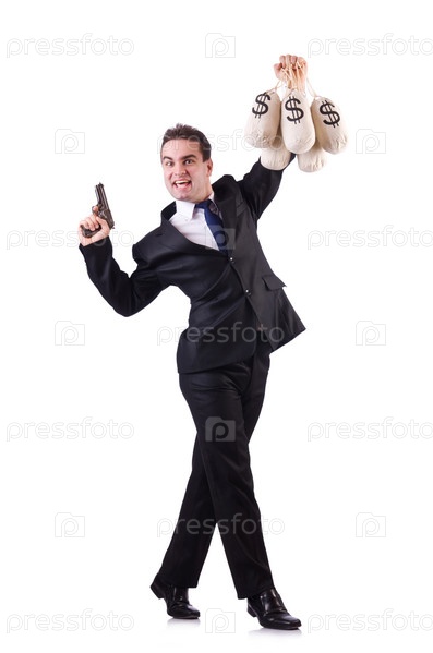 Человек с пистолетом и мешком денег