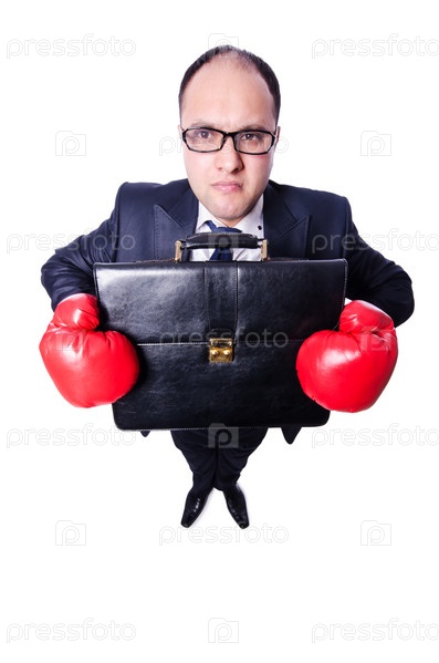 Молодой бизнесмен в боксерских перчатках, изолированный на белом фоне