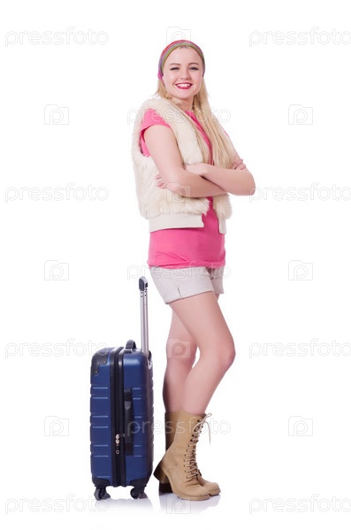 Молодая женщина готова к летним каникулам на белом фоне