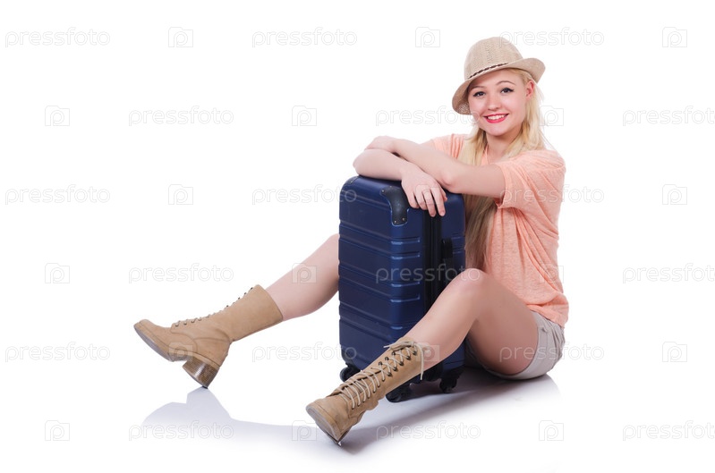 Молодая женщина готова к летним каникулам на белом фоне