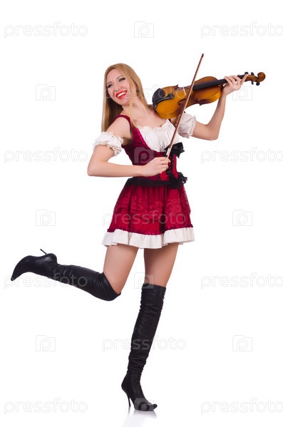 Девушка играет на скрипке на белом