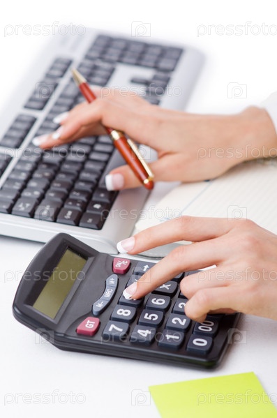 Руки работают на калькуляторе