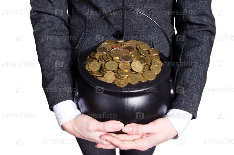 Женщина, держащая горшок золотых монет