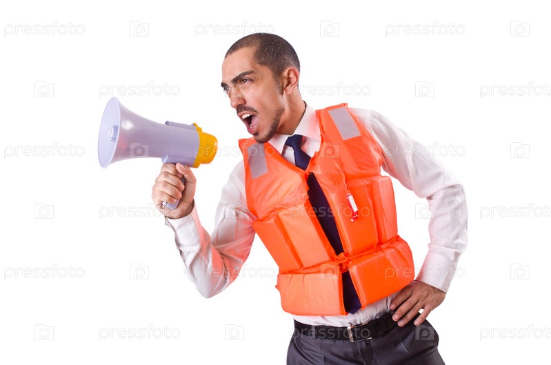 Человек в спасательном жилете, изолированный на белом