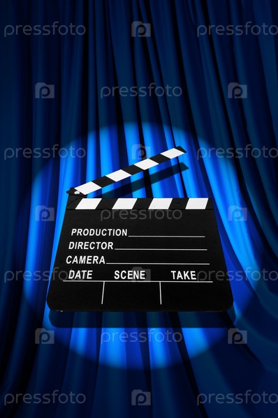 Кинохлопушка на фоне занавеса