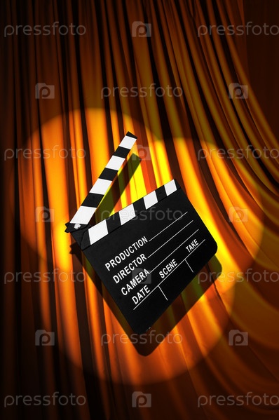 Кинохлопушка на фоне занавеса
