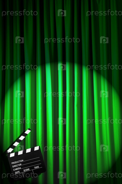 Кинохлопушка на фоне занавеса