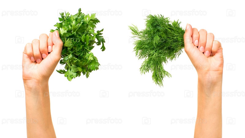 Петрушка и укроп в руках