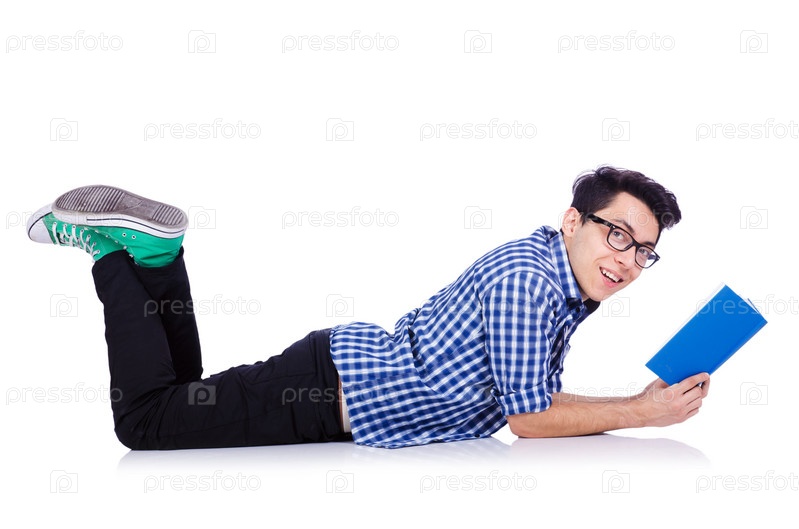 Студент с книгами на белом