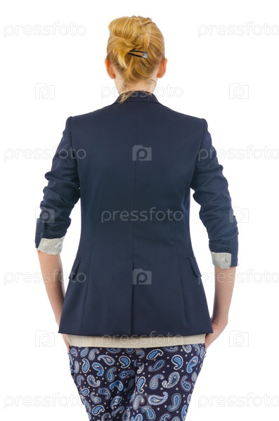 Концепция моды, модель в одежде на белом фоне