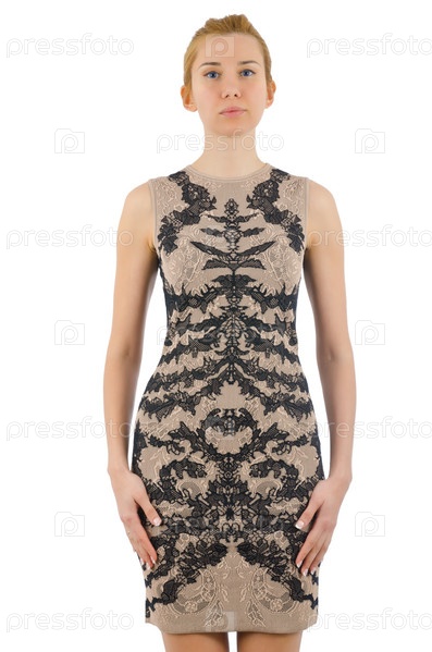Концепция моды, модель в одежде на белом фоне