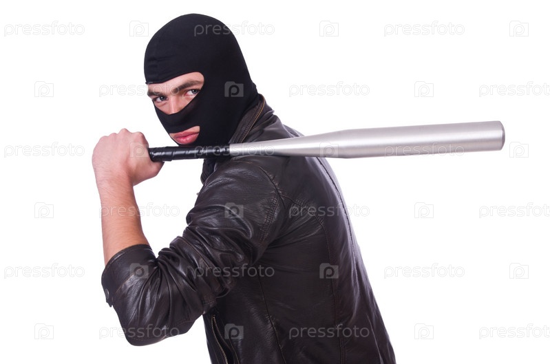 Хулиган с битой на белом фоне