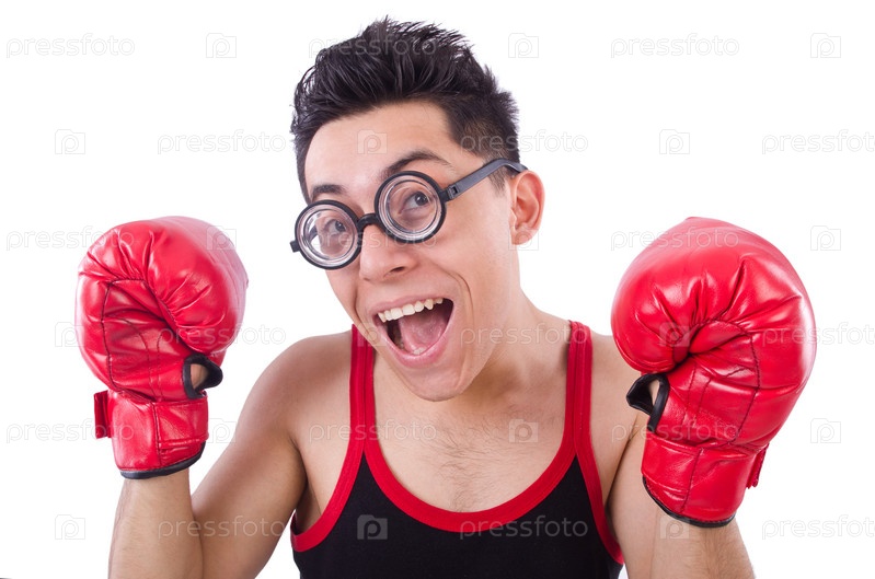 Смешной боксер, изолированный на белом фоне
