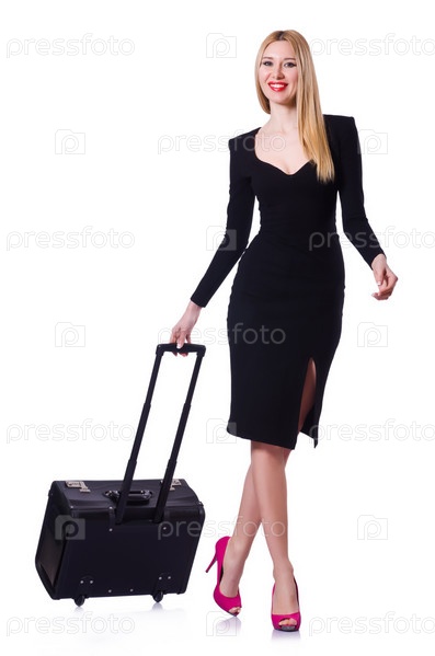 Молодая женщина готова к летним каникулам на белом фоне