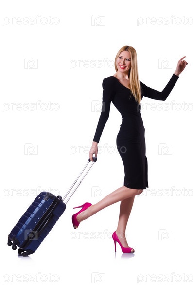 Молодая женщина готова к летним каникулам на белом фоне